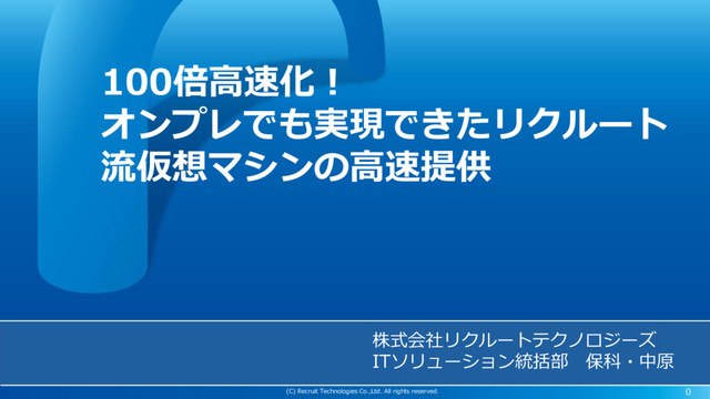 0 (C) Recruit Technologies Co.,Ltd. All rights reserved. 100倍高速化! オンプレでも実現できたリクルート