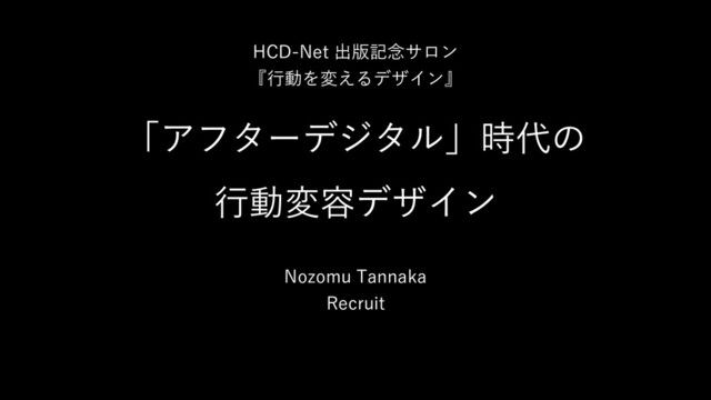 「アフターデジタル」時代の 行動変容デザイン Nozomu Tannaka Recruit HCD-Net 出版記念サロン 『行動を変えるデザイン』