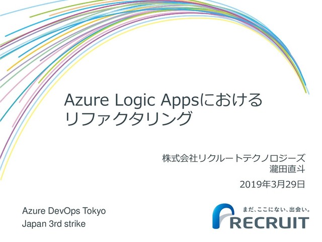 Azure Logic Appsにおける リファクタリング 株式会社リクルートテクノロジーズ 瀧田直斗 2019年3月29日 Azure DevOps Tokyo