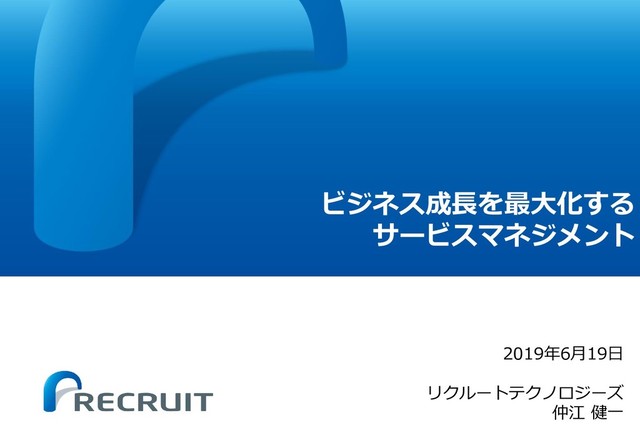 ビジネス成長を最大化する サービスマネジメント 2019年6月19日 リクルートテクノロジーズ 仲江 健一