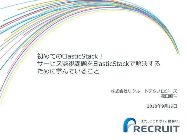 初めてのElasticStack! サービス監視課題をElasticStackで解決する ために学んでいること 株式会社リクルートテクノロジーズ 瀧田直斗 2018年9月19日