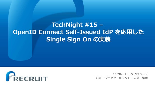 On の実装 リクルートテクノロジーズ IDP部 シニアアーキテクト 入來 隼也