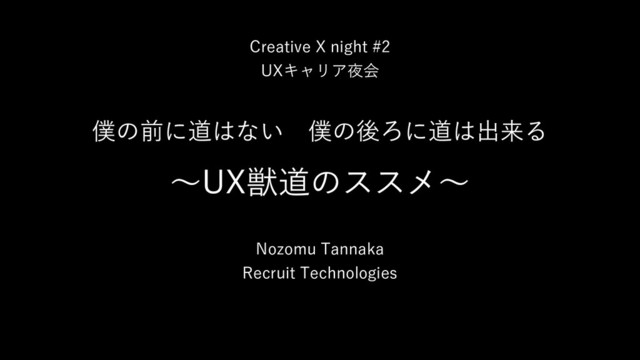 僕の前に道はない 僕の後ろに道は出来る ~UX獣道のススメ~ Nozomu Tannaka Recruit Technologies Creative X night