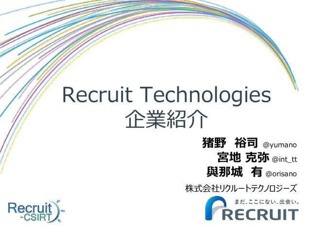 Recruit Technologies 企業紹介 猪野 裕司 @yumano 宮地 克弥 @int_tt 與那城
