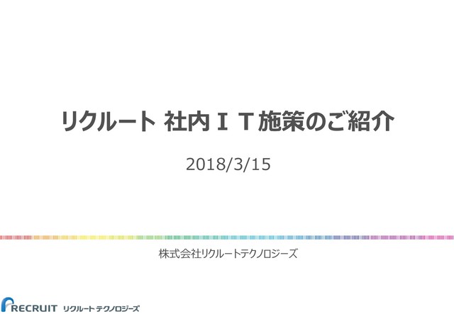 リクルート 社内IT施策のご紹介 2018/3/15 株式会社リクルートテクノロジーズ