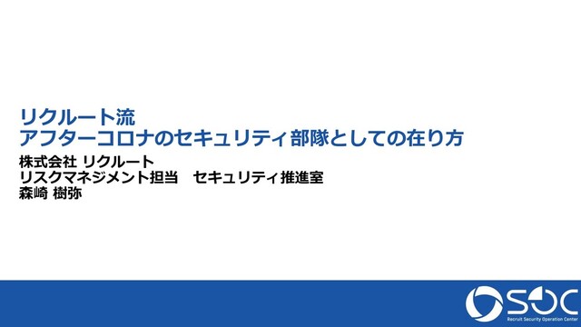 リクルート流 アフターコロナのセキュリティ部隊としての在り方 株式会社 リクルート リスクマネジメント担当 セキュリティ推進室 森崎 樹弥