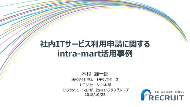 社内ITサービス利用申請に関する intra-mart活用事例 木村 雄一郎 株式会社リクル-トテクノロジ-ズ ITソリュ-ション本部 インフラソリュ-ション部 社内インフラ3グル-プ 2018/10/25