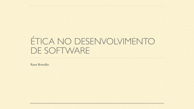 ÉTICA NO DESENVOLVIMENTO DE SOFTWARE Ruan Brandão