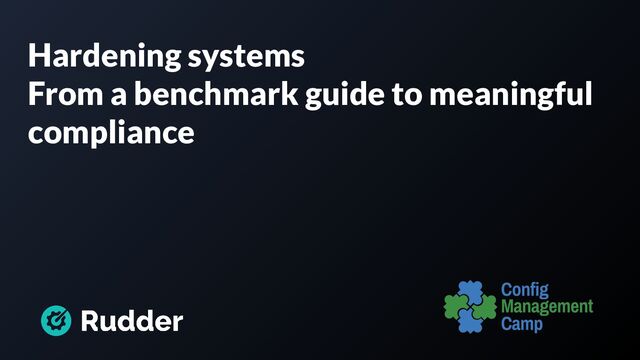 In this talk, I will present how we implemented a CIS Server benchmarks on an existing infrastructure using Rudder. It starts from the reference Excel Benchmarks from CIS to finish by the implementation of every control point, with default values and mixed audit and remediation mode. It concludes by showing how having a graphical interface makes the reporting to relevant stakeholders helpful.