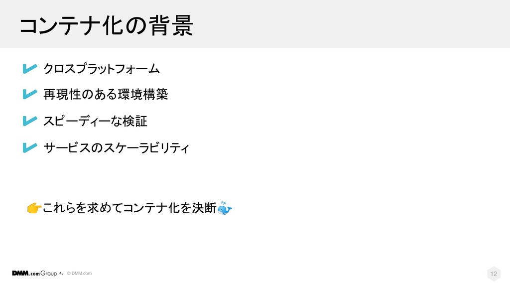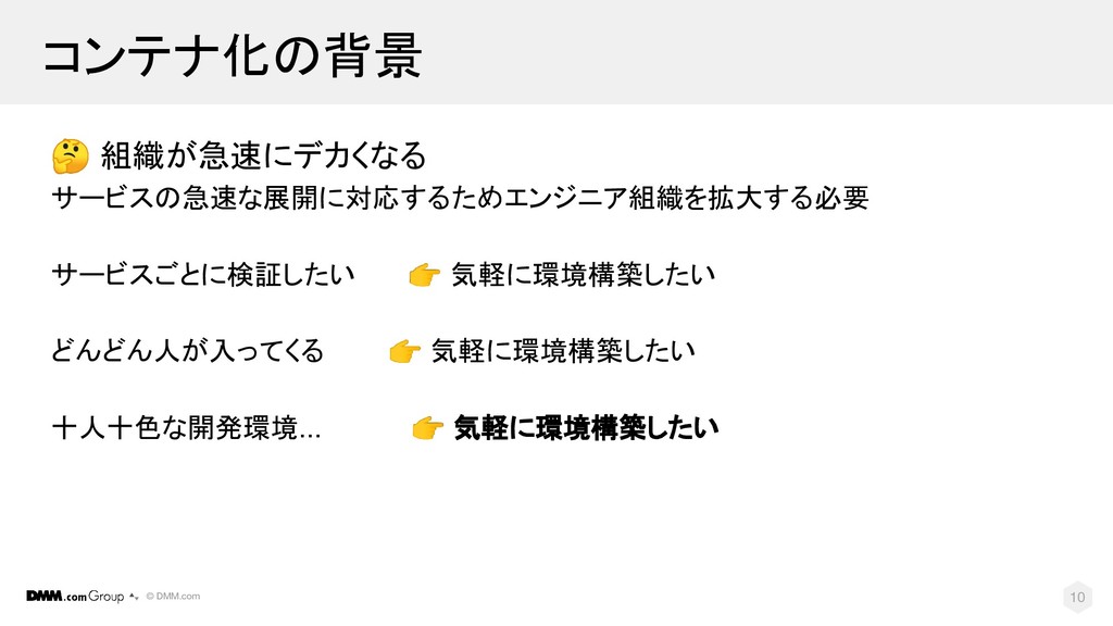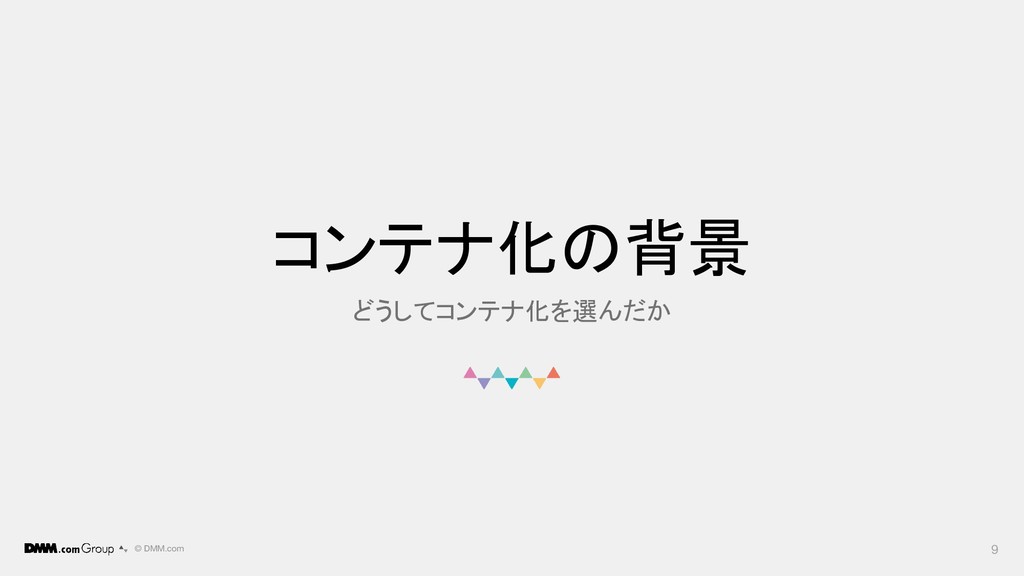© DMM.com コンテナ化の背景 どうしてコンテナ化を選んだか 9
