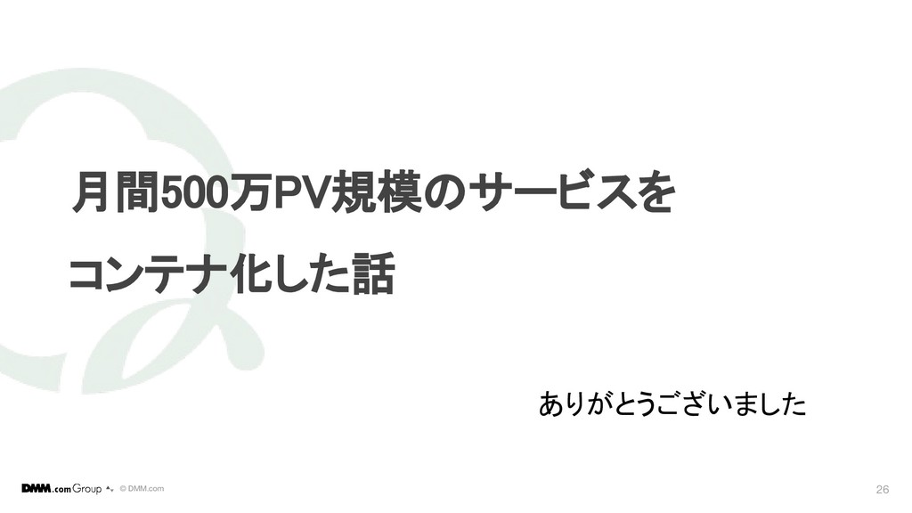 © DMM.com 26 月間500万PV規模のサービスを コンテナ化した話 ありがとうございました