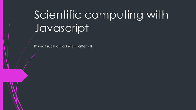 of aviation fuel rates, and Great Circle routes, all on the client side. Running clustering/classification/regression algorithms on the server, and passing their results to the client as D3.js visualizations. Running Javascript-based neural networks on the server, and sharing them with Parrot drones running Javascript, for facial recognition. The possibilities, to put it mildly, are rather endless.