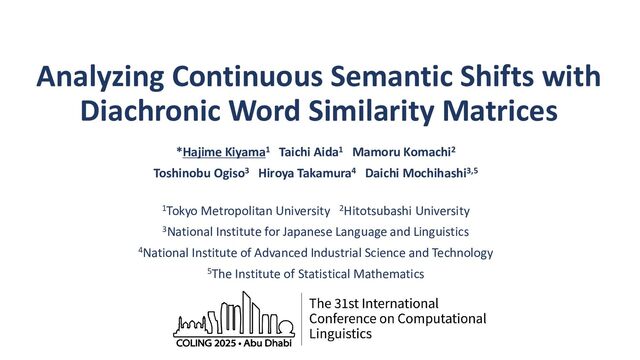 Kiyama1 Taichi Aida1 Mamoru Komachi2 Toshinobu Ogiso3 Hiroya Takamura4 Daichi Mochihashi3,5 1Tokyo Metropolitan University 2Hitotsubashi University 3National Institute for Japanese Language and Linguistics 4National Institute of Advanced Industrial Science and Technology 5The Institute of Statistical Mathematics