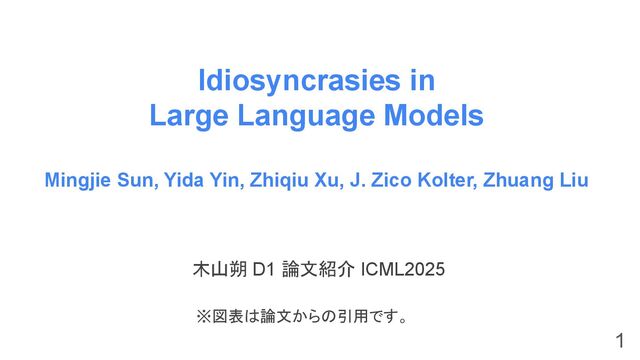 木山朔 D1 論文紹介 ICML2025 1 ※図表は論文からの引用です。 Idiosyncrasies in Large Language