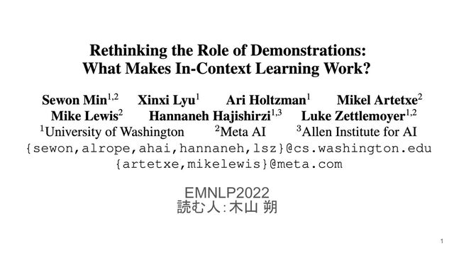Abst • GPT の few-shot における demo は実際どのくらい効いているのか? • 分類タスクにおいて,正解ラベルをランダムに変えても性能は低下しない