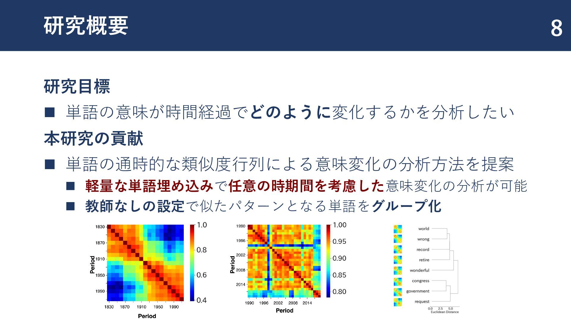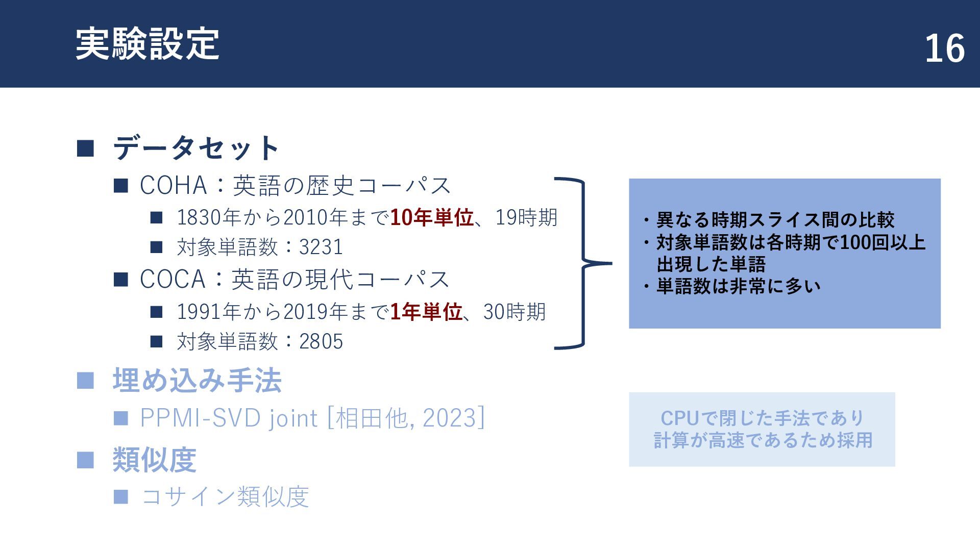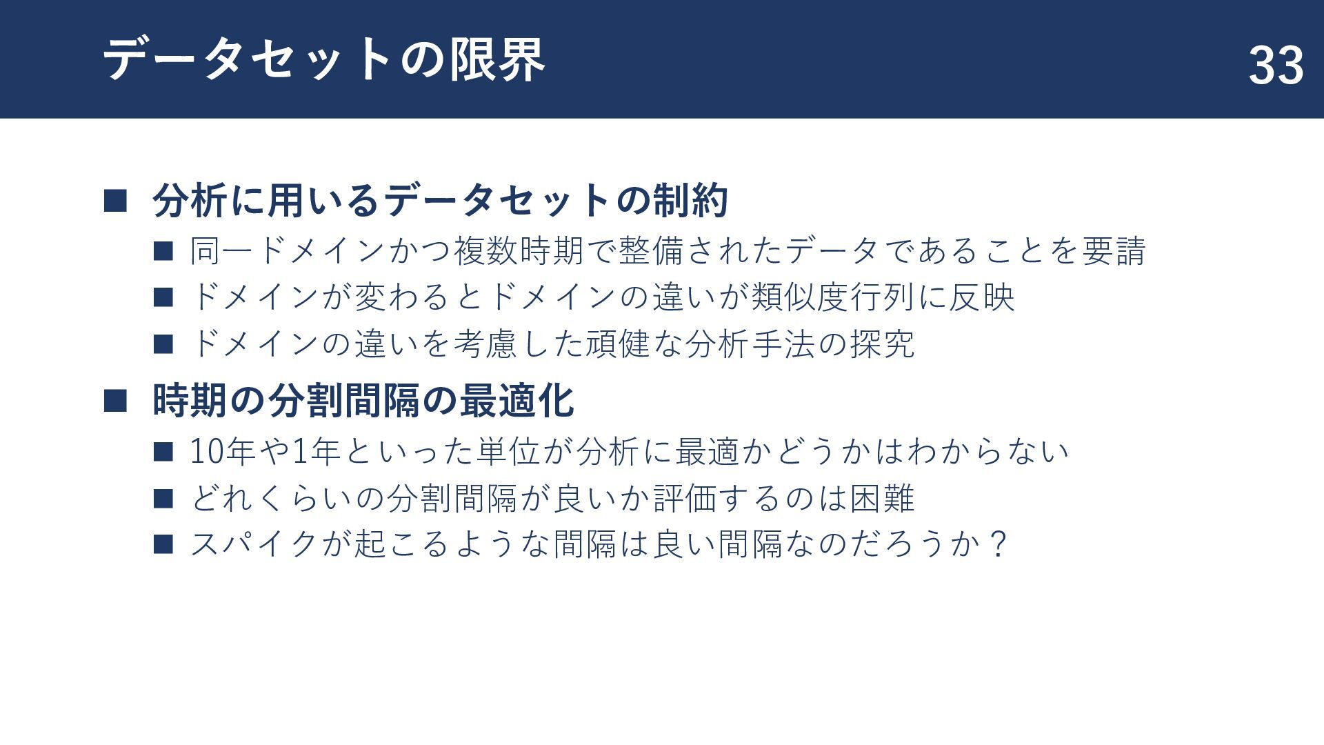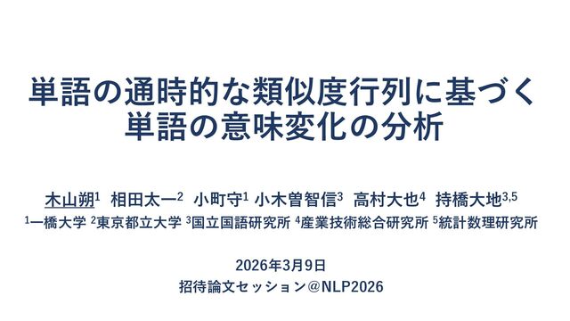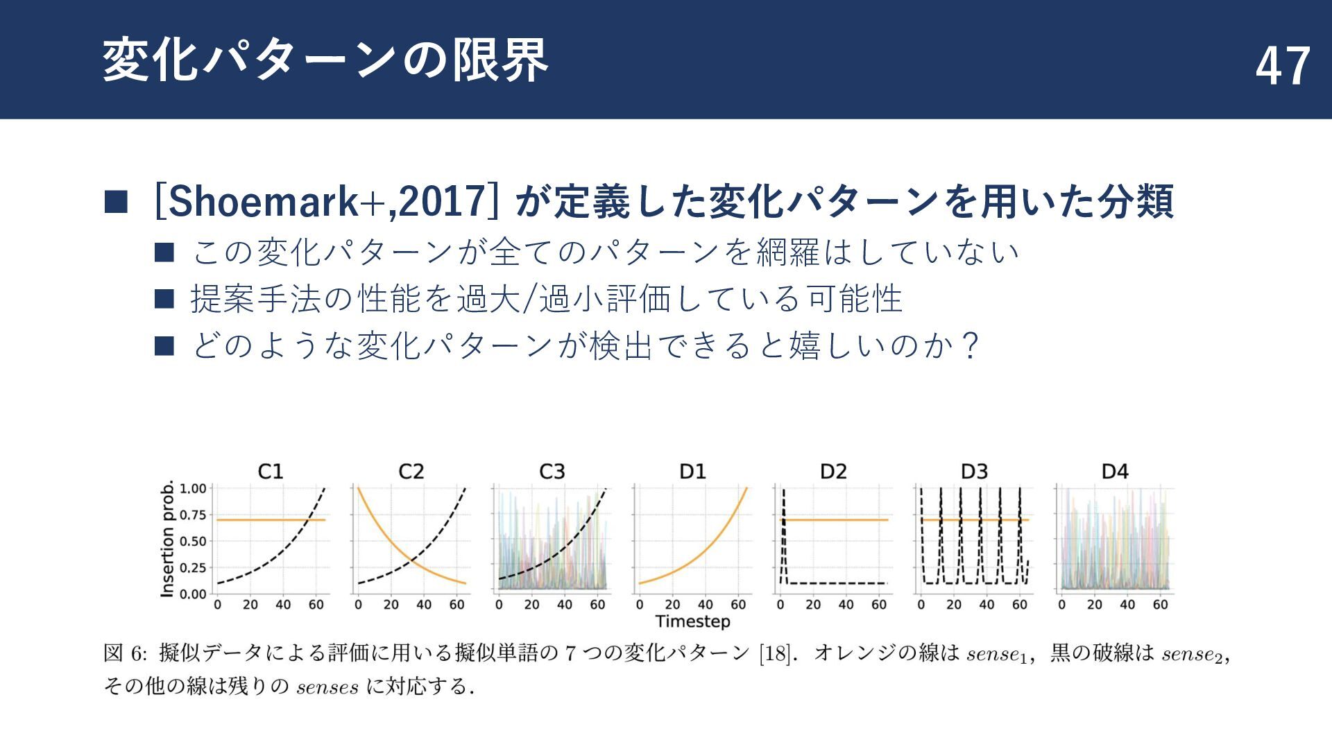 Tahmasebi, 2024a][Aida and Bollegala, 2024][Periti+, 2024] ◼ どの単語が意味変化したかを検出 ◼ 2つの時期間で意味変化の度合いを計測 ◼ 意味変化度合いがアノテーションされたデータセットが存在 ◼ 複数時期の意味変化 [Kulkarni+, 2015] [Hu+, 2019] [Giulianelli+, 2020] ◼ ある単語がどのように意味変化するかを分析 ◼ 変化点検出や語義の割合を計測 ◼ アノテーションされたデータセットは存在しない ◼ 既存手法には課題が存在 5 本研究はこちら!!!