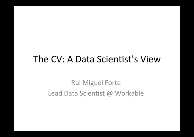 to power features from be]er search to recommenda0ons • Most users can fill in an online form or apply with their LinkedIn account, but the CV is not dead – Many recruiters operate with CVs with obfuscated candidate details – Clients oWen have a databank of CVs from candidates who applied in the past – Some people simply prefer to submit their CV