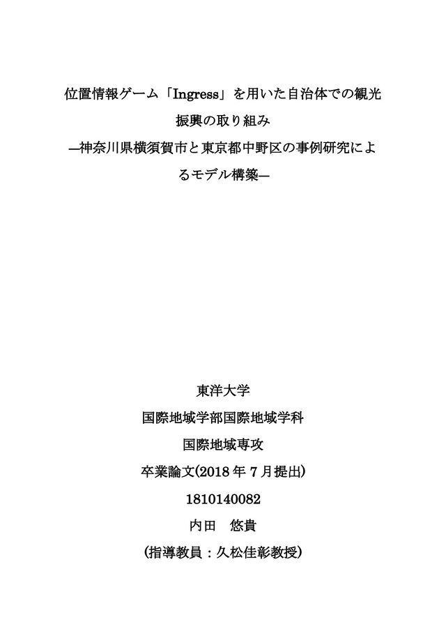 位置情報ゲーム「Ingress」を用いた自治体での観光振興の取り組み―神奈川県横須賀市と東京都中野区の事例研究によるモデル構築― 内田悠貴 - blog-RuinDig