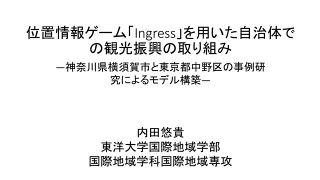 Ingressを用いた自治体での観光振興の取り組みについて、神奈川県横須賀市と東京都中野区にインタビューを行い、それに基づいてIngressを用いた自治体での観光振興の取り組みについて求められる要素をまとめたモデル図を作成しました。