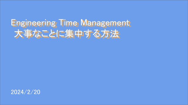 Engineering Time Management 大事なことに集中する方法 2024/2/20