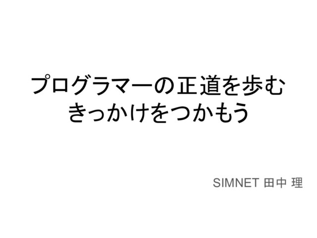 プログラマーの正道を歩む きっかけをつかもう SIMNET 田中 理