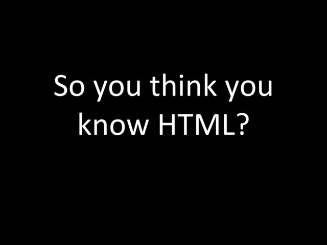 Often overlooked by developers, HTML is the concrete skeleton of any website or webapp. This talk was put together to remind peeps that it's more than just a bunch of divs separated with 's