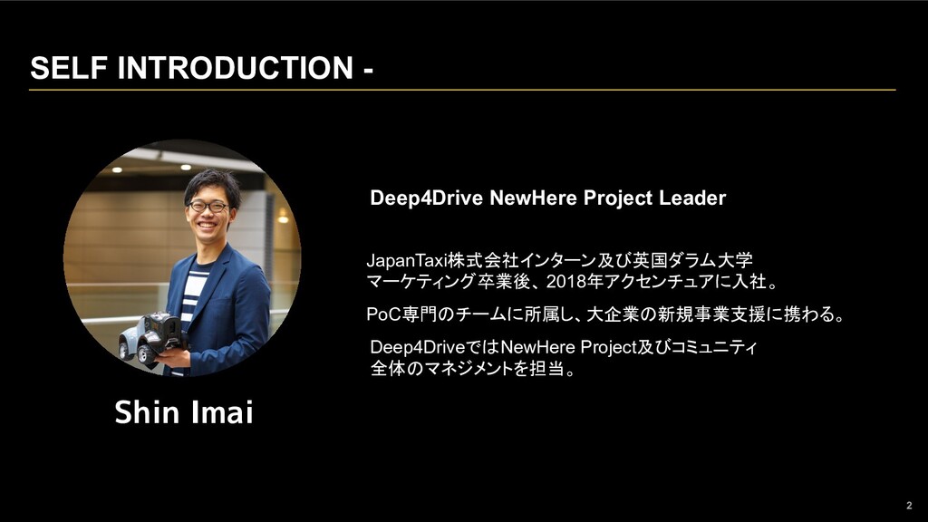 2 Shin Imai SELF INTRODUCTION - Deep4Drive NewHere Project Leader
