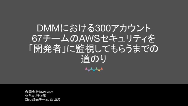 © DMM.com CONFIDENTIAL DMMにおける300アカウント 67チームのAWSセキュリティを 「開発者」に監視してもらうまでの 道のり 合同会社DMM.com セキュリティ部 CloudSecチーム