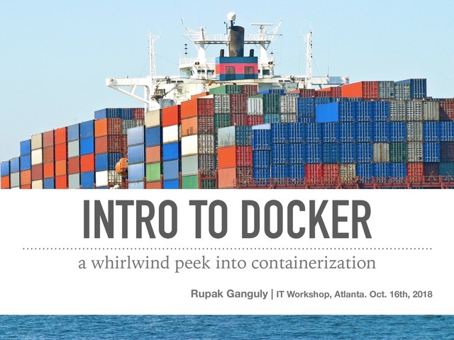 running distributed applications inside containers. The platform consists of: The Docker Engine: a portable, lightweight runtime and packaging tool. It is the CLI that we interact with. The Docker Hub: A public/private registry for docker images, supporting sharing, and automatic builds. If it works on your machine, it will work anywhere. ensures repeatability removes dependency hell promotes portability