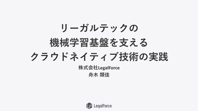 リーガルテックの 機械学習基盤を⽀える クラウドネイティブ技術の実践 株式会社LegalForce ⾈⽊ 類佳