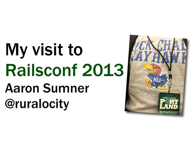 My visit to Railsconf 2013 Aaron Sumner @ruralocity