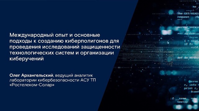 В рамках доклада обсудим, что такое киберполигон и какие задачи он выполняет. Рассмотрим основные предпосылки, международный и российский опыт построения подобных комплексов. Детально изучим подходы к моделированию сложных кибер-физических систем и промышленных объектов; обсудим основные возможности киберполигона, такие как исследование последствий деструктивных воздействий на информационные системы объектов КИИ и проведение киберучений. В заключительной части доклада поговорим о перспективах и основных направлениях развития киберполигона.