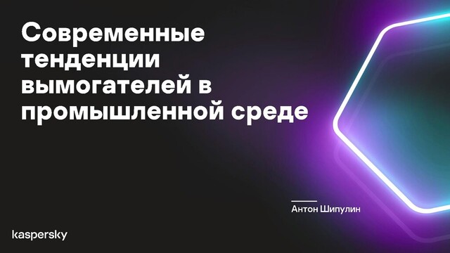 "Вымогатели в промышленных сетях. Что нового?", Антон Шипулин, RUSCADASEC Co-founder, Industrial Cybersecurity Lead, Kaspersky