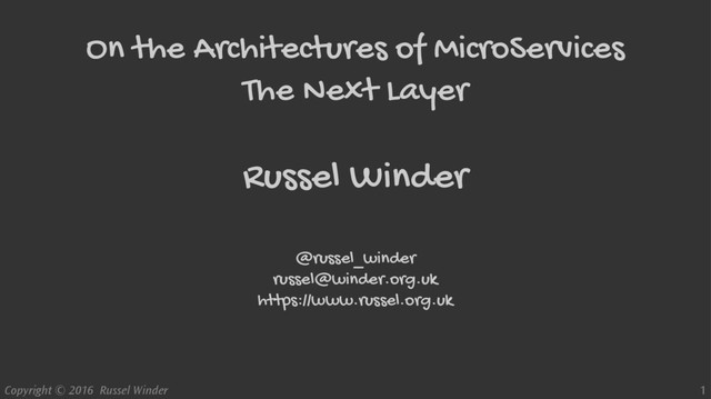 My µCon 2016 session presentation slides. This was about introducing PGAS (partitioned global address space) as a new architectural form for use in microservices systems. As always I draw on the slides as I speak and this is not captured here, you need to watch the video https://skillsmatter.com/skillscasts/8737-on-the-architectures-of-microservices-the-next-layer