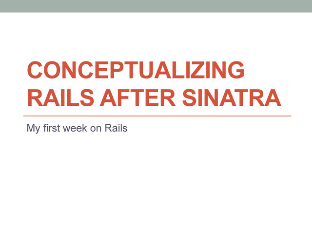 a different kind of thing • Model-driven applications (Rails) • Controller-driven applications (Sinatra) • Sinatra deals with server-side HTTP requests