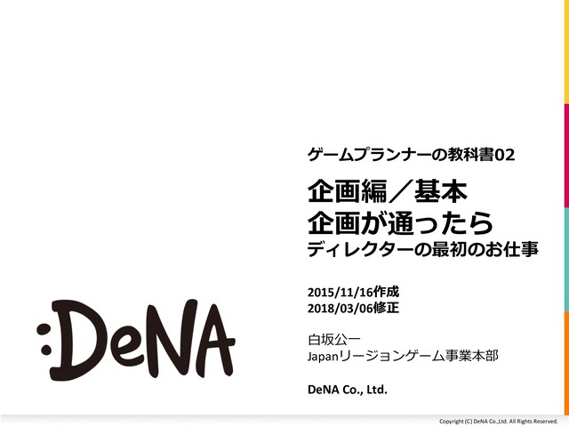 Copyright (C) DeNA Co.,Ltd. All Rights Reserved. 02 2015/11/16 2018/03/06