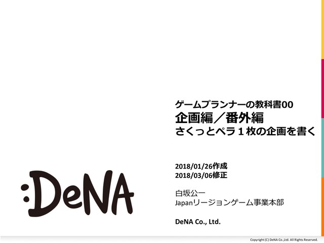 Copyright (C) DeNA Co.,Ltd. All Rights Reserved. 0 2018/01/26 2018/03/06