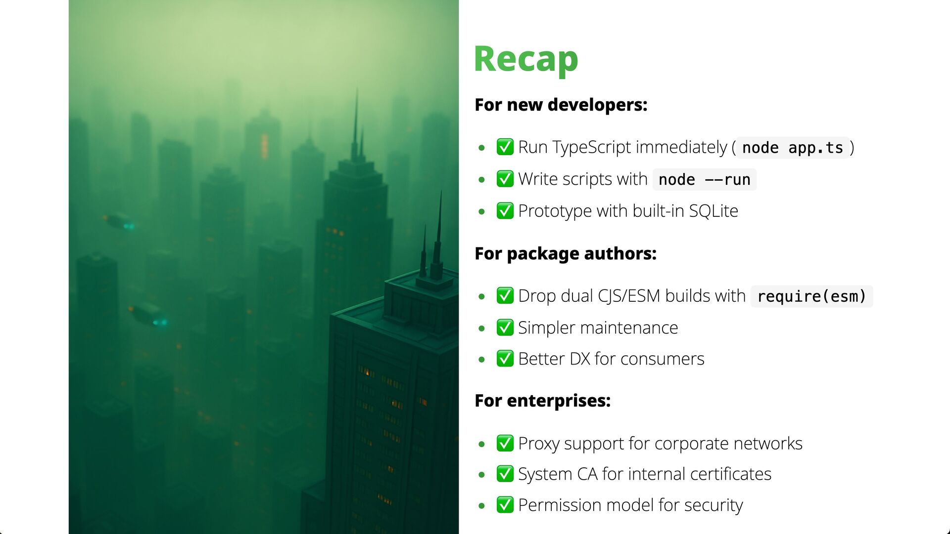 This talks is a recap of what went on in the Node.js runtime in 2024-2025. Presented at JSConf US 2025