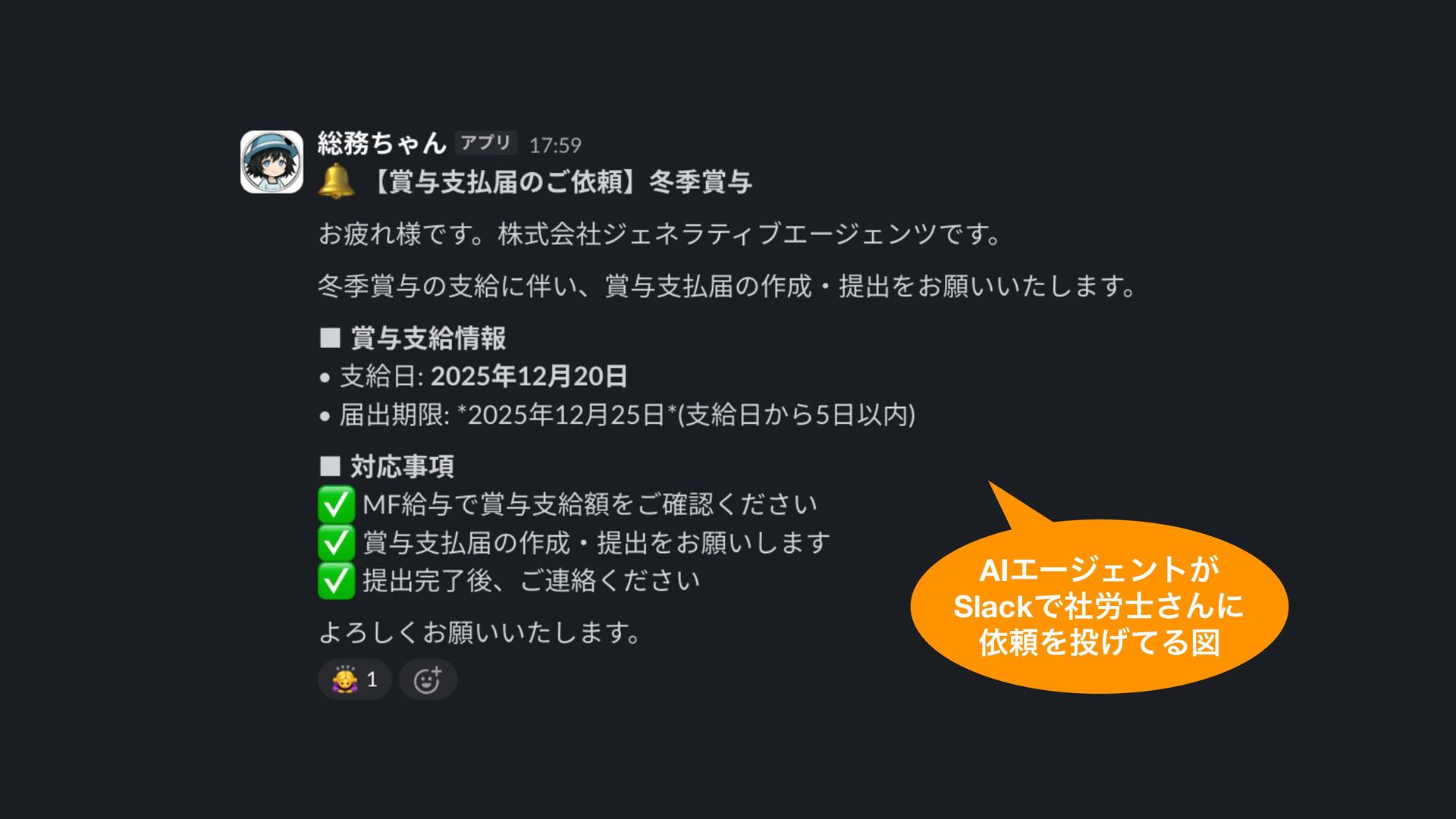 AIΤʔδΣϯτ͕ SlackͰࣾ࿑࢜͞Μʹ ґཔΛ͛ͯΔਤ