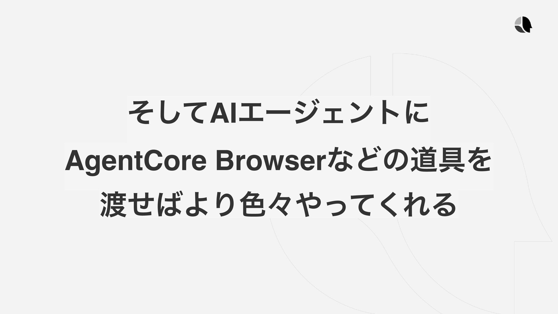 ͦͯ͠AIΤʔδΣϯτʹ AgentCore BrowserͳͲͷಓ۩Λ ͤΑΓ৭ʑͬͯ͘ΕΔ