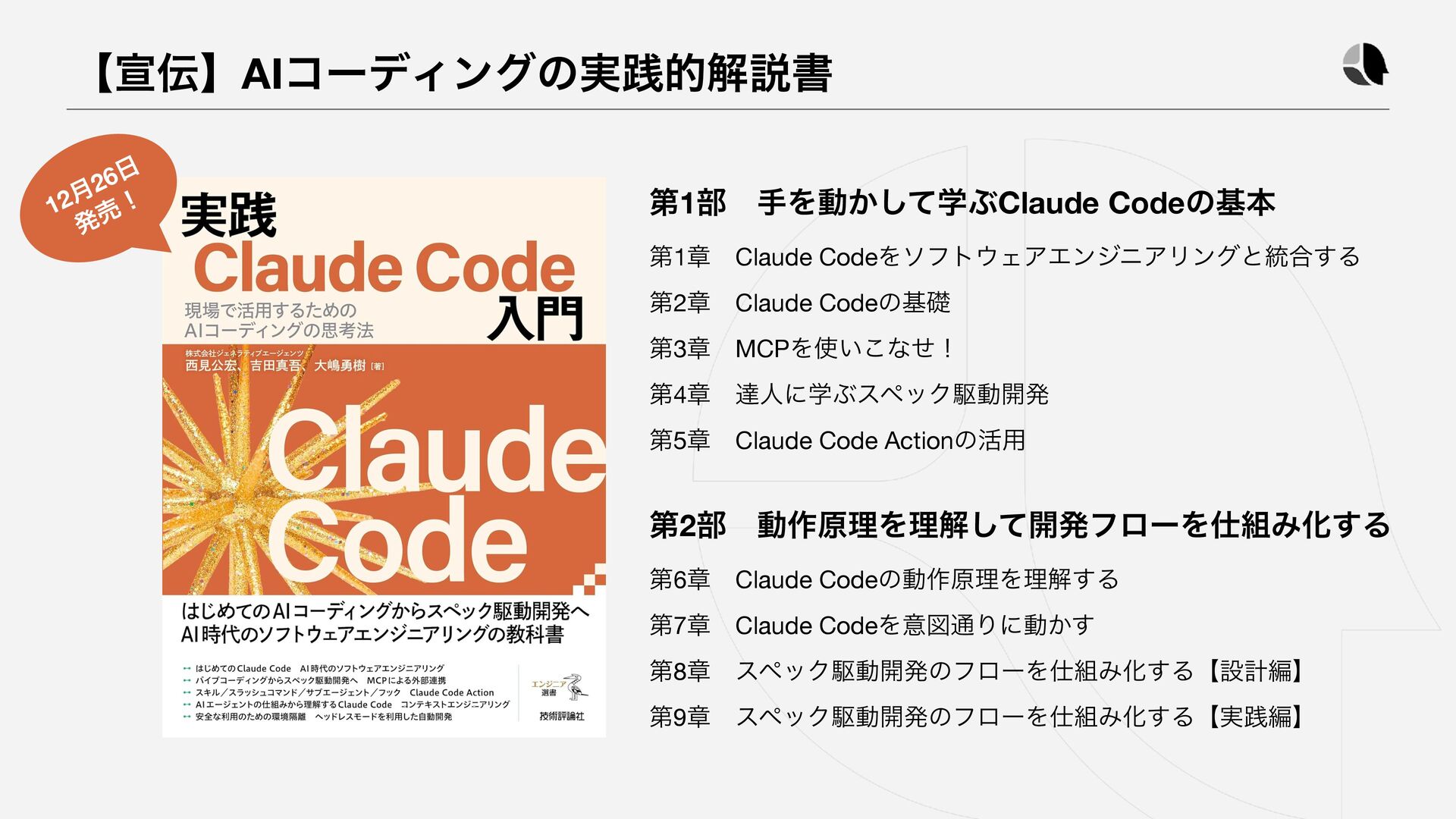 ୈ4ষɹୡਓʹֶͿεϖοΫۦಈ։ൃ ୈ5ষɹClaude Code Actionͷ׆༻ ୈ2෦ɹಈ࡞ݪཧΛཧղͯ͠։ൃϑϩʔΛΈԽ͢Δ ୈ6ষɹClaude Codeͷಈ࡞ݪཧΛཧղ͢Δ ୈ7ষɹClaude CodeΛҙਤ௨Γʹಈ͔͢ ୈ8ষɹεϖοΫۦಈ։ൃͷϑϩʔΛΈԽ͢Δʲઃܭฤʳ ୈ9ষɹεϖοΫۦಈ։ൃͷϑϩʔΛΈԽ͢Δʲ࣮ફฤʳ