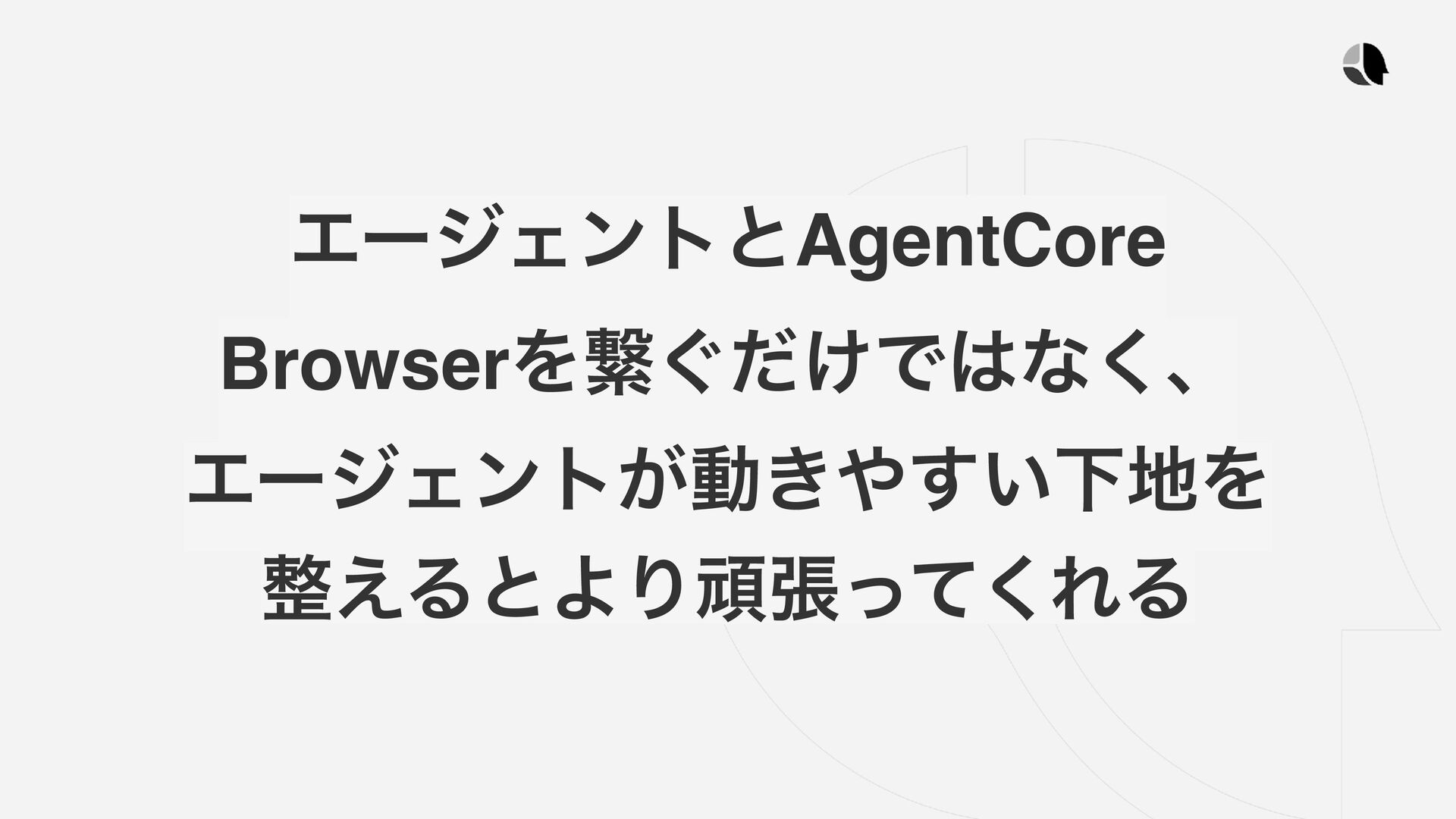 ΤʔδΣϯτͱAgentCore BrowserΛܨ͙͚ͩͰͳ͘ɺ ΤʔδΣϯτ͕ಈ͖͍͢ԼΛ ͑ΔͱΑΓؤுͬͯ͘ΕΔ