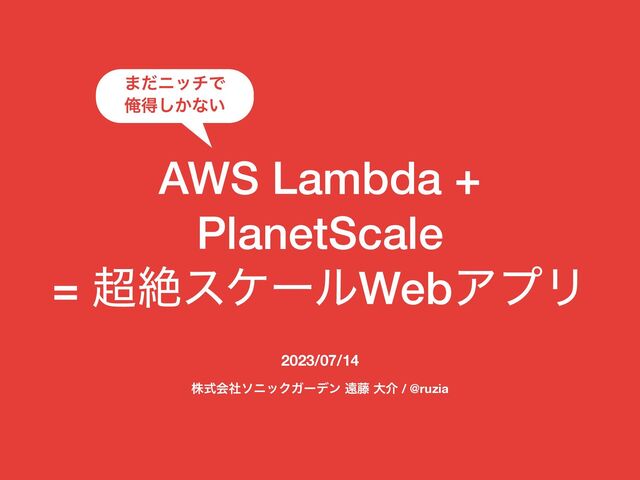 AWS Lambda + PlanetScale = ઈεέʔϧWebΞϓϦ 2023/07/14 גࣜձࣾιχοΫΨʔσϯ ԕ౻ େհ