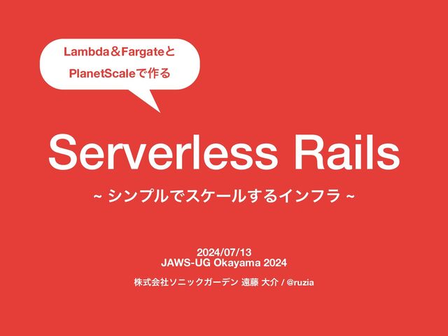 Serverless Rails ~ γϯϓϧͰεέʔϧ͢ΔΠϯϑϥ ~ 2024/07/13 JAWS-UG Okayama 2024 גࣜձࣾιχοΫΨʔσϯ