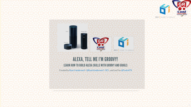 Slides from our talk on Alexa Skills with Groovy and Grails from GR8Conf US 2016 see https://github.com/rvanderwerf/grails-alexa-skills for pdf of slides and more info by Ryan Vanderwerf @RyanVanderwerf and Lee Fox @FoxInATX