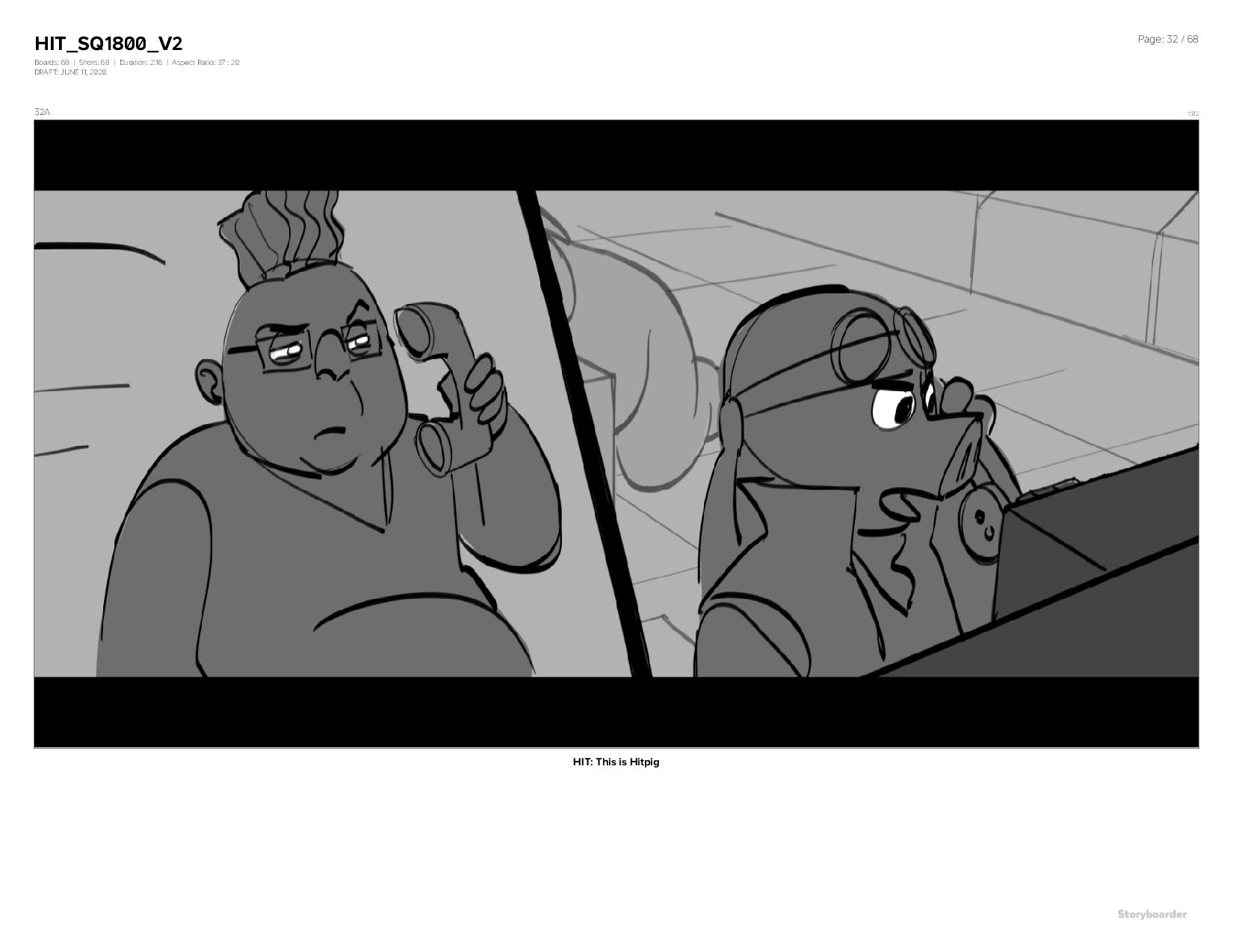 Aspect Ratio: 37 : 20 DRAFT: JUNE 11, 2020 Page: 32 / 68 32A 1:02 HIT: This is Hitpig