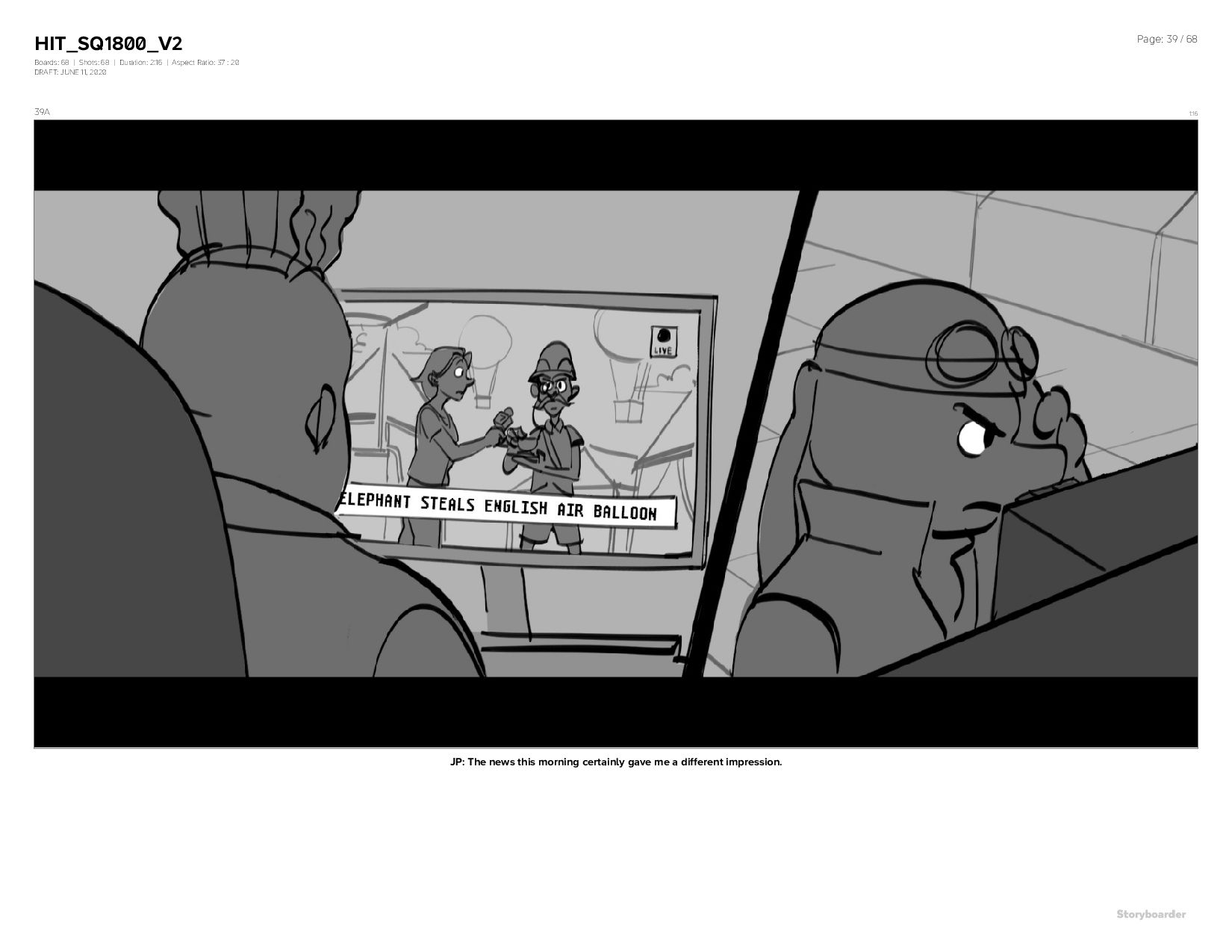 Aspect Ratio: 37 : 20 DRAFT: JUNE 11, 2020 Page: 39 / 68 39A 1:16 JP: The news this morning certainly gave me a different impression.