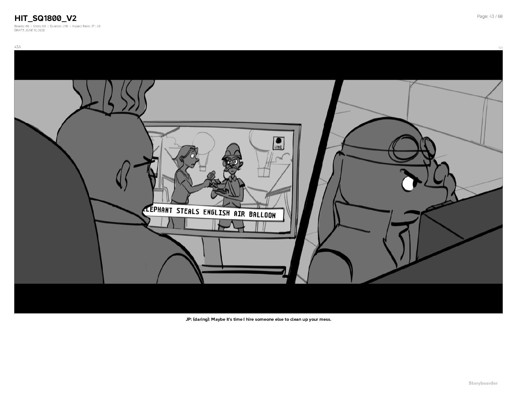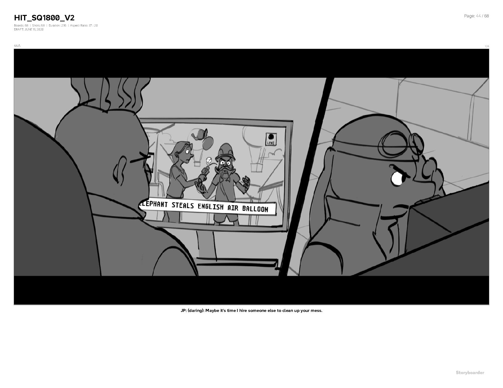 Aspect Ratio: 37 : 20 DRAFT: JUNE 11, 2020 Page: 44 / 68 44A 1:26 JP: (daring): Maybe it's time I hire someone else to clean up your mess.