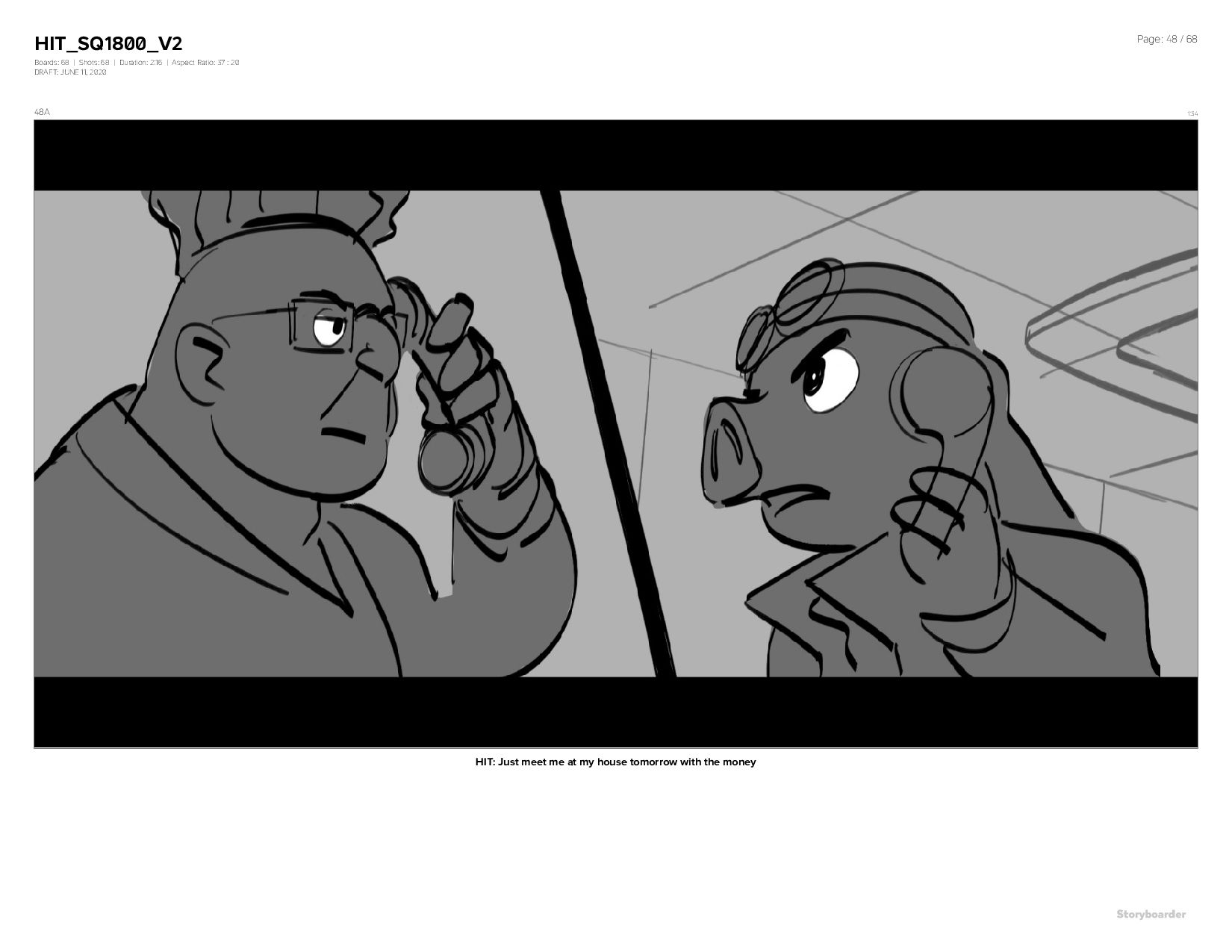 Aspect Ratio: 37 : 20 DRAFT: JUNE 11, 2020 Page: 48 / 68 48A 1:34 HIT: Just meet me at my house tomorrow with the money