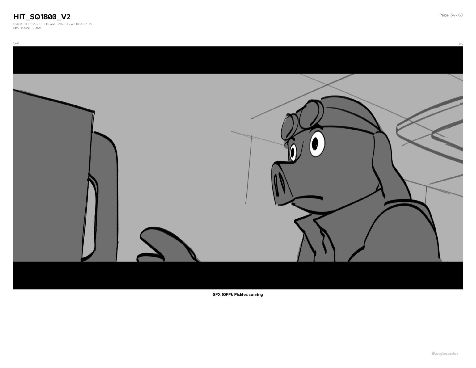 Aspect Ratio: 37 : 20 DRAFT: JUNE 11, 2020 Page: 54 / 68 54A 1:46 SFX (OFF): Pickles sonring